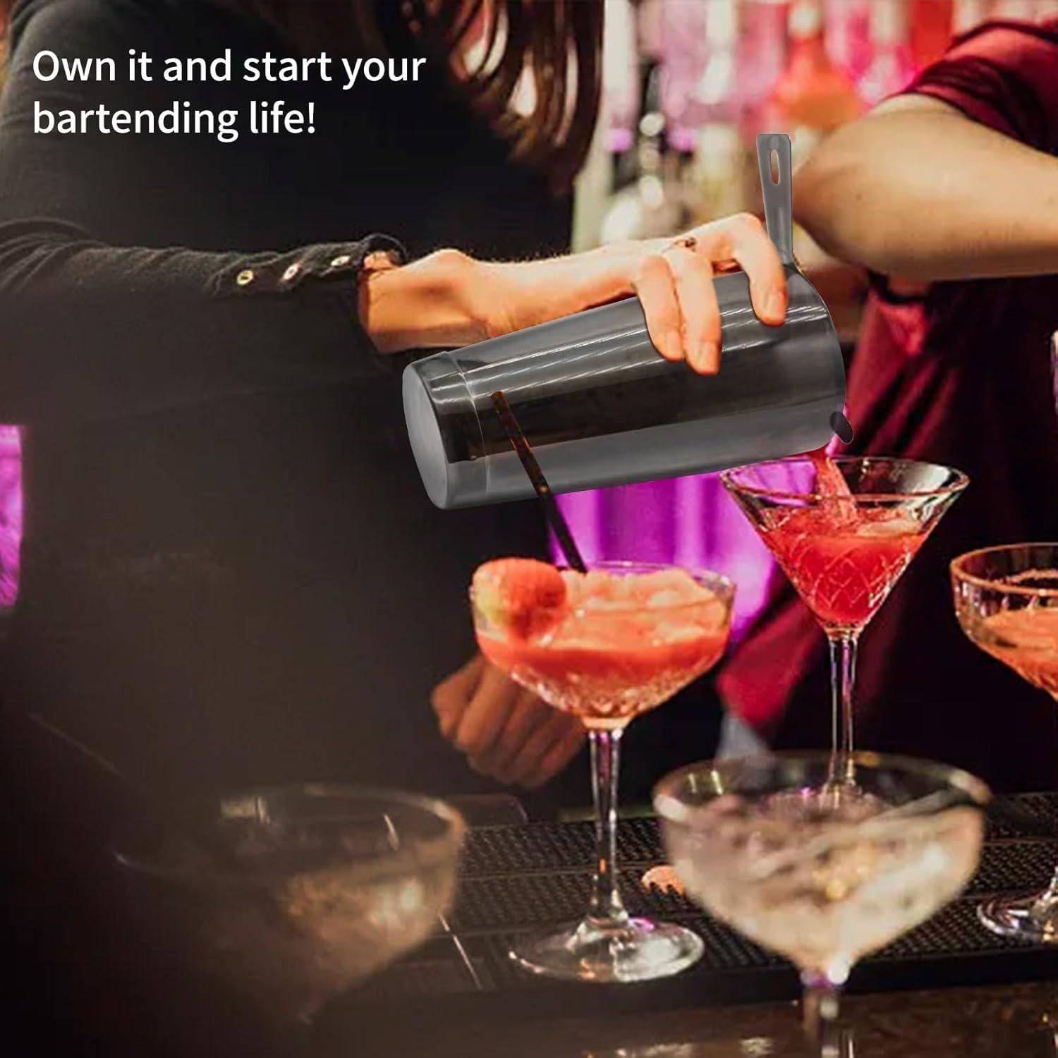 Boston Cocktail Shaker Bar Set, Weighted Boston Shaker Tins, Bartender Kit with 18oz & 28oz Mixed Drink Shaker, Hawthorne Strainer, Double Measuring Jigger - Black(Black)