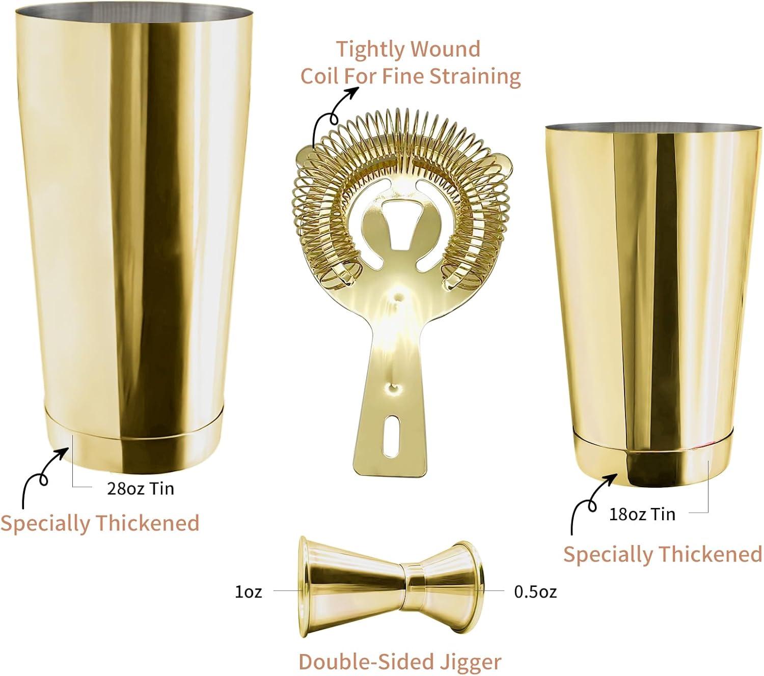 imageBoston Cocktail Shaker Bar Set Weighted Boston Shaker Tins Bartender Kit with 18oz ampamp 28oz Mixed Drink Shaker Hawthorne Strainer Double Measuring Jigger  BlackGold