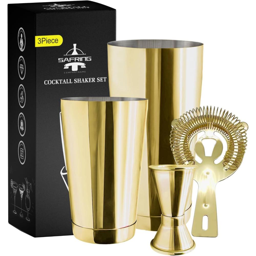 Boston Cocktail Shaker Designed For The Bar: Make the home bar no longer monotonous! Safring designed the stainless steel cocktail shaker in colorful colors, giving it a sleek and modern look that will enhance any bar area. The beautifully crafted cocktail bar set adds a touch of class to any home or professional bar.