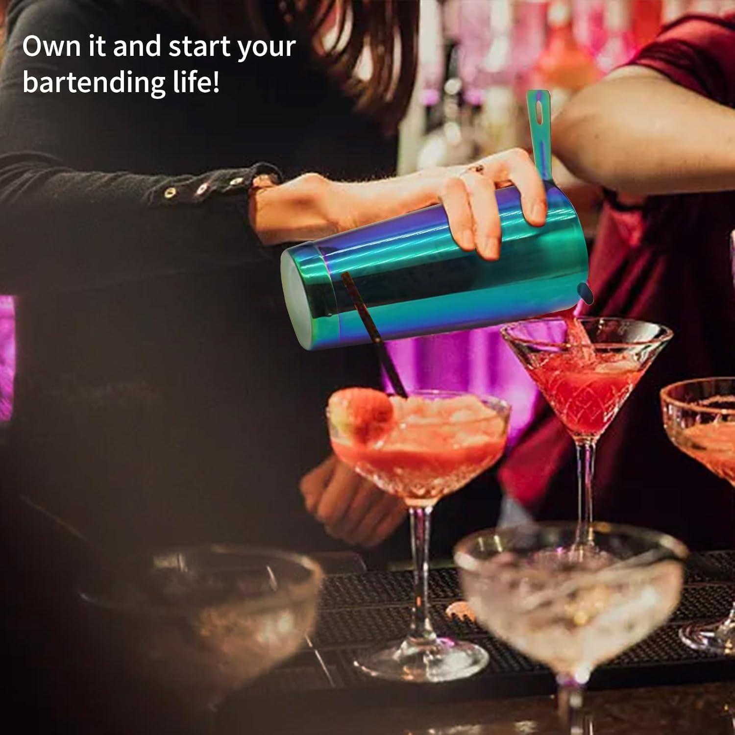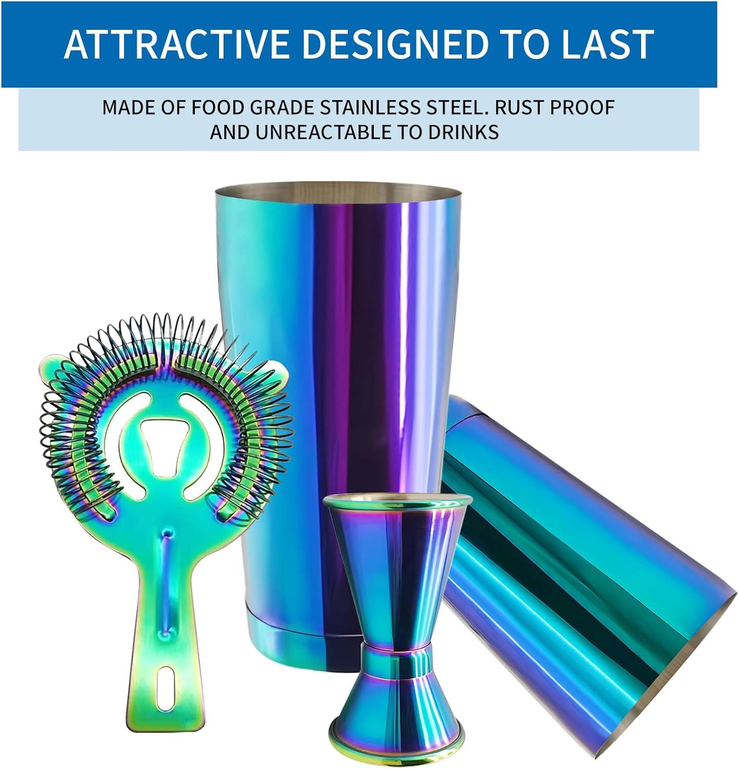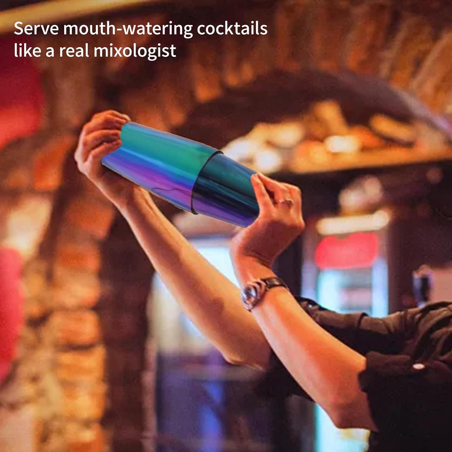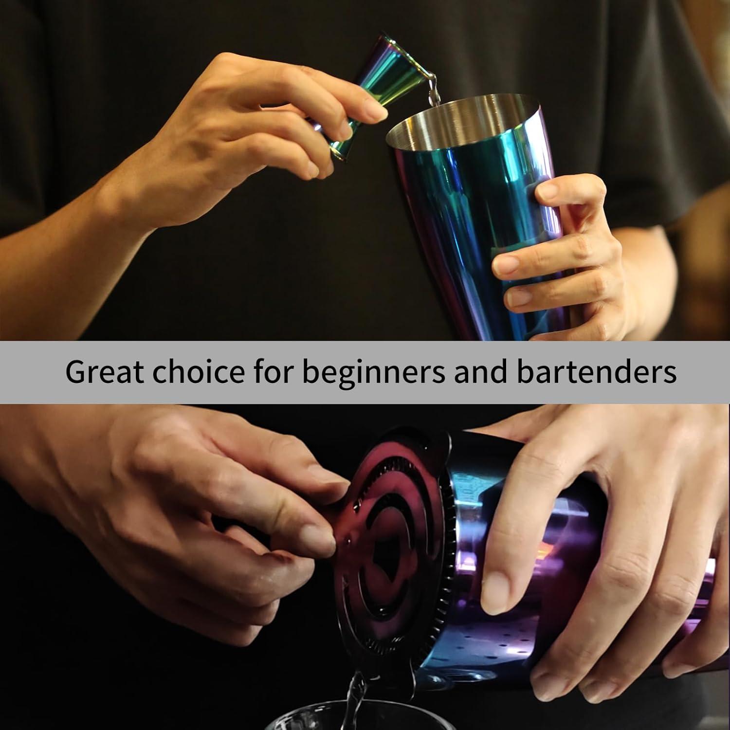 Boston Cocktail Shaker Bar Set, Weighted Boston Shaker Tins, Bartender Kit with 18oz & 28oz Mixed Drink Shaker, Hawthorne Strainer, Double Measuring Jigger – Black(Rainbow)
