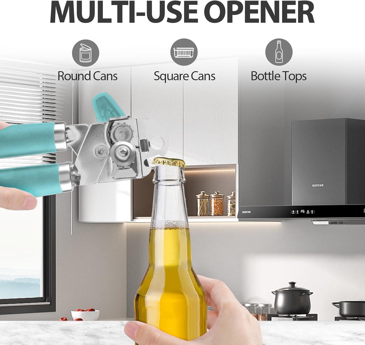 imageCan Opener Manual Heavy Duty Handheld Strong Can Opener with Soft Touch Handle Sharp Blade Smooth Edge Can Openers with Multifunctional Bottle Opener BlueAqua Sky