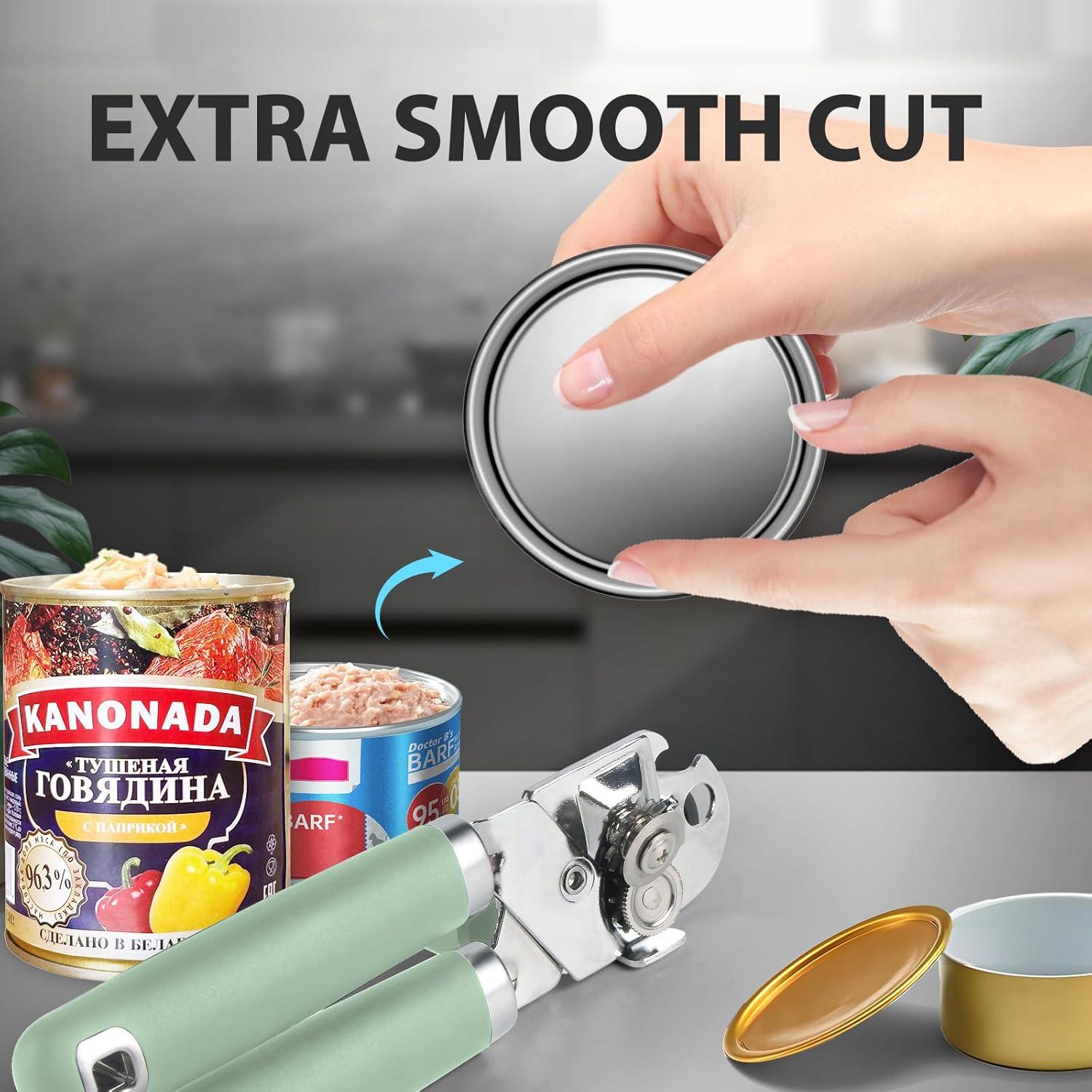 【Excellent Quality】Our handheld can opener is made of high quality materials for increased durability and longevity. Food grade stainless steel cutting wheels ensures 100% food safe to you.